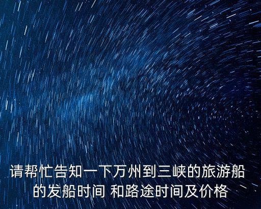 貴壩做游輪到貴池多久,請(qǐng)幫忙告知一下萬(wàn)州到三峽的旅游船 的發(fā)船時(shí)間 和路途時(shí)間及價(jià)格